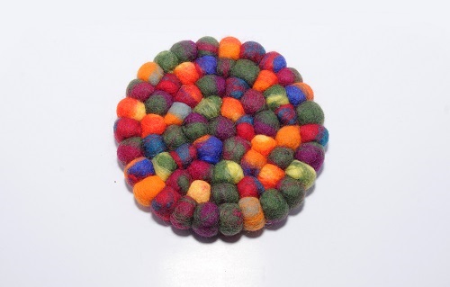 20X20CM BALL MAT (2CM BALL) HANDMADE FELT V(WOOLEN) USE FOR HOME DECOR CODE NO-FMT06 MADE IN NEPAL
